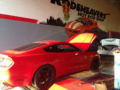 Rodeheaver's Mustang dyno can do things that other dynos can't. The rollers require such little force to spin, you can turn all the rollers, as well as the giant PAU magnet and 800lb. flywheel with just one finger!! Because of this, it can easily record accurate 0-60, 0-100 and 1/4 mile drag times. The difference in the Mustang and your "average dyno" is the capability to load the MD-1100 with the proper resistance to better tune your car. For example if you have a 3250lb mustang on the MD-1100 I enter the weight of the car and aerodynamic characteristics of the vehicle and the machine calculates the amount of resistance against the rear wheels, on your “average dyno” your 3250lb car is turning a 2200lb drum without any resistance at all so therefore you are technically writing a tune for a 2200lb car.. When the car is unloaded off of your "average dyno" sometimes you will experience drivability issues the issues are related to not being able to tune the car with the correct amount of load against the rear wheels. So with the latest most up to date software available and one of the most advanced dynos on the market give us a call with your tuning needs.